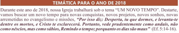 / Mensagens do Pr. Theodomiro / Temática para o ano de 2018 |